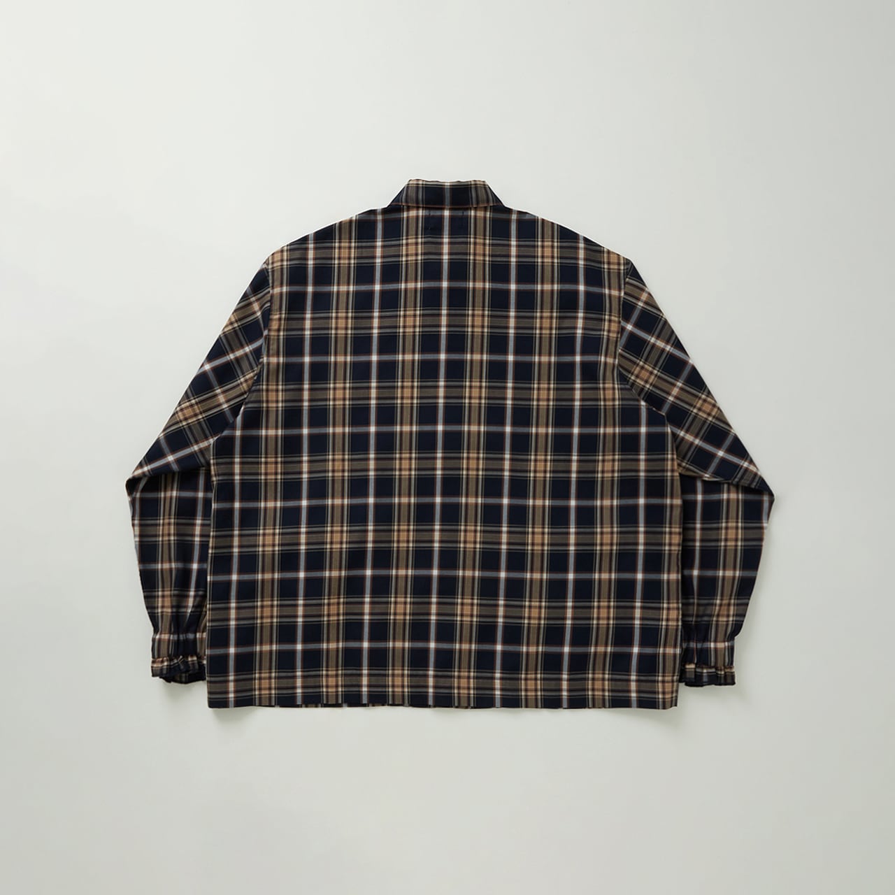 袖のフリルとポケットのプリーツが特徴的なチェックシャツ。