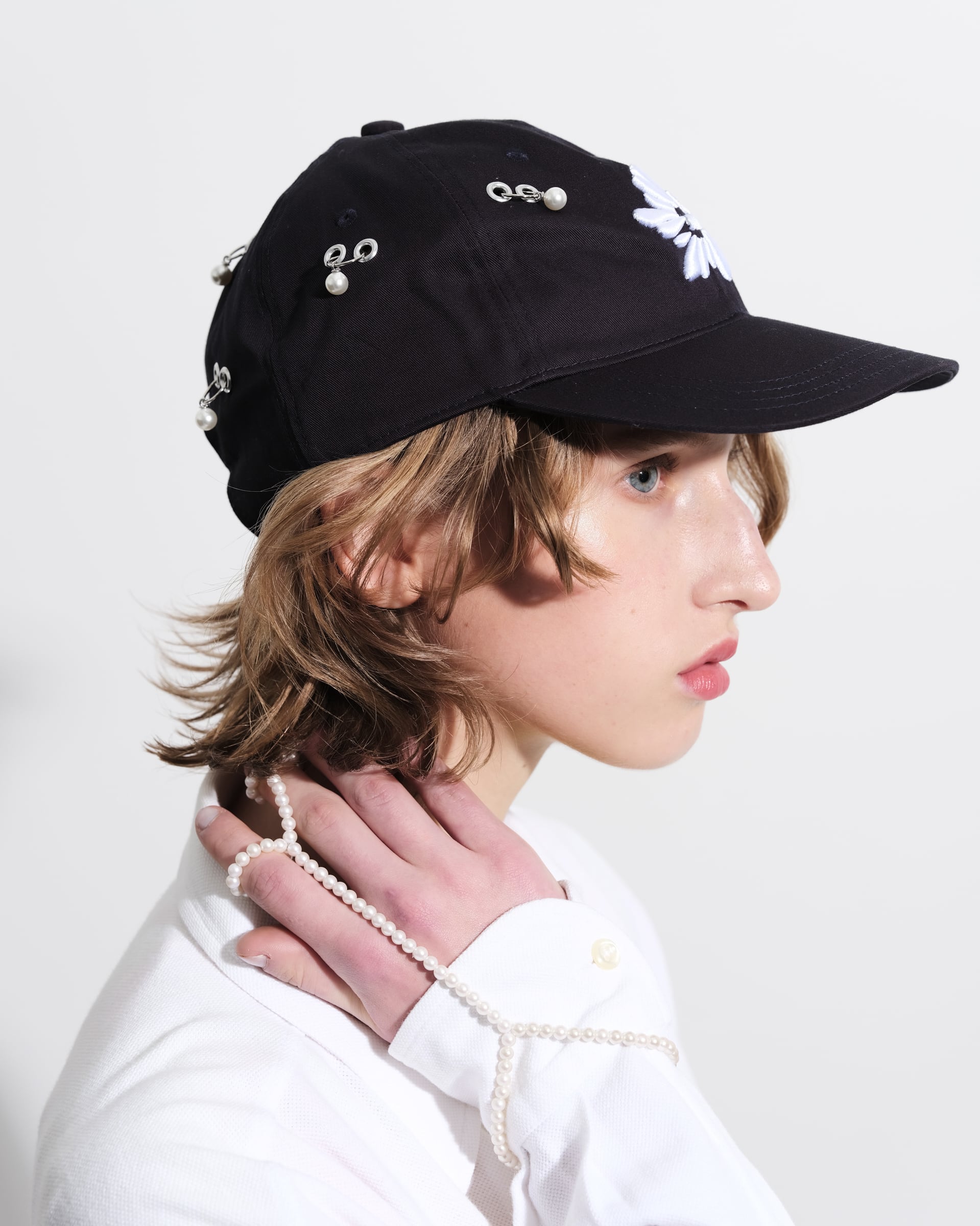 6箇所に配置されたパールのジュエリーが目を惹きます。