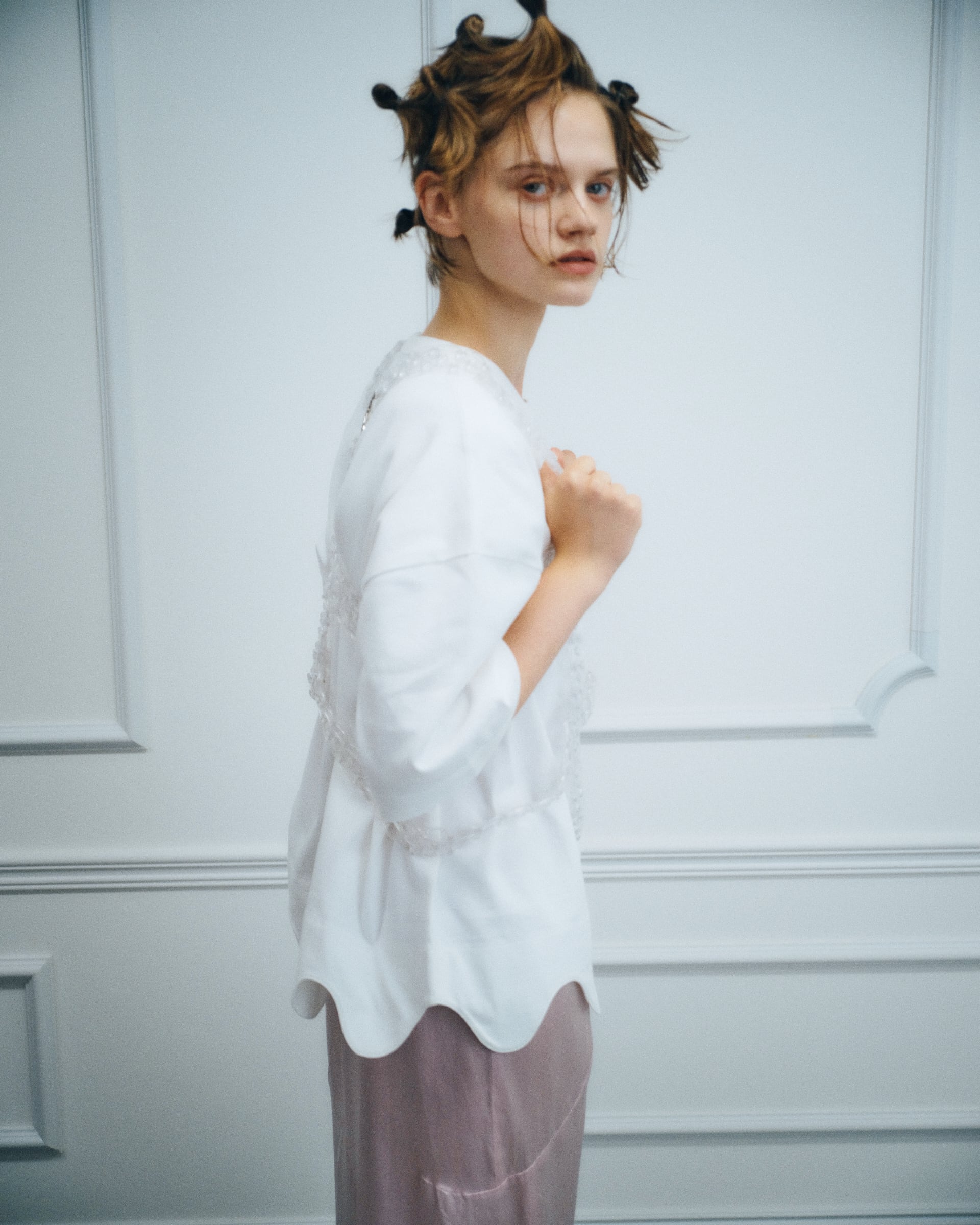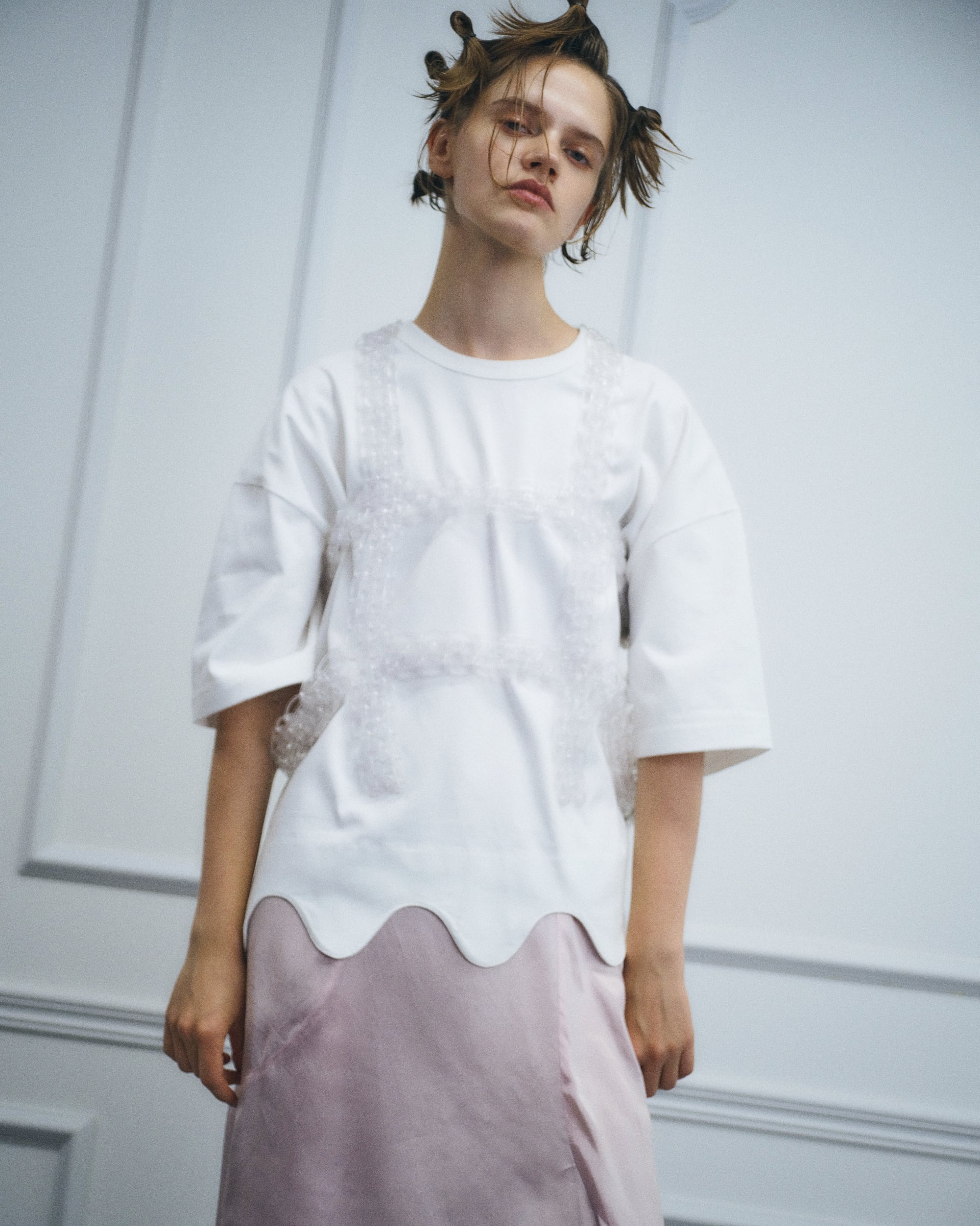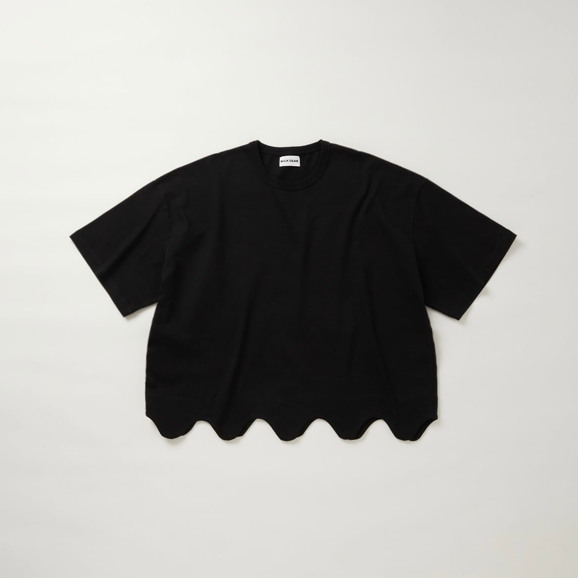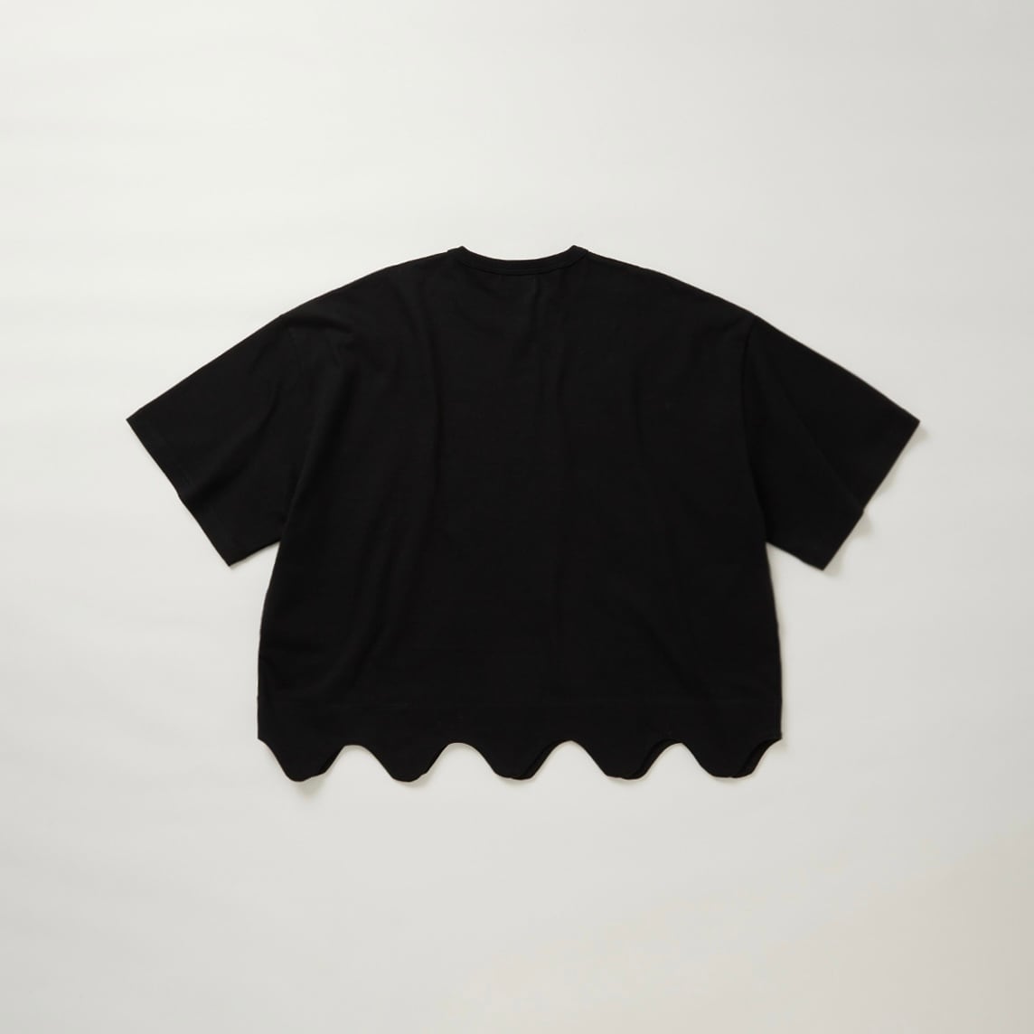 ヘビーウェイトでしっかりとしながらも柔らかな風合い。丈の波打ったデザイン(スカラップ)が特徴。