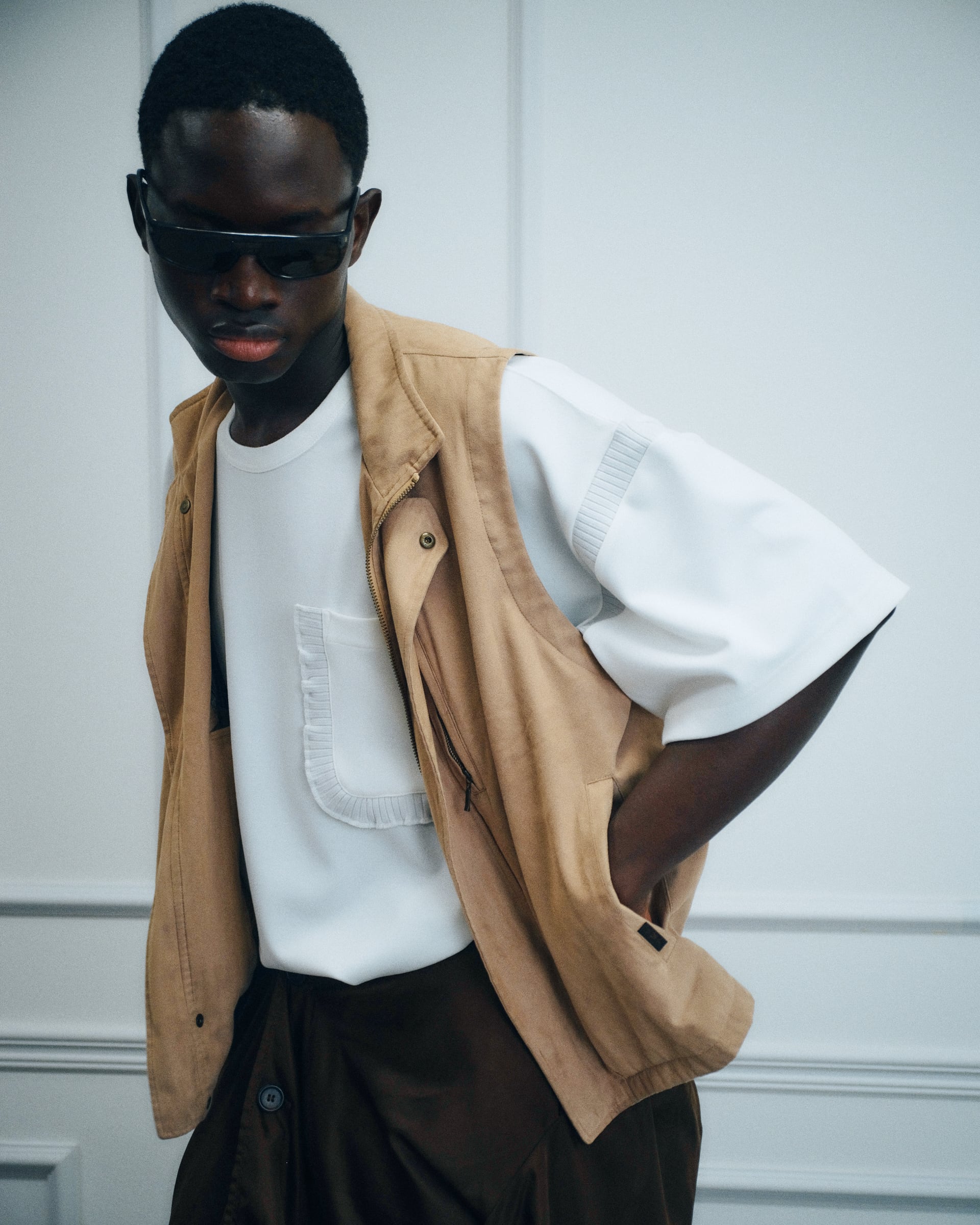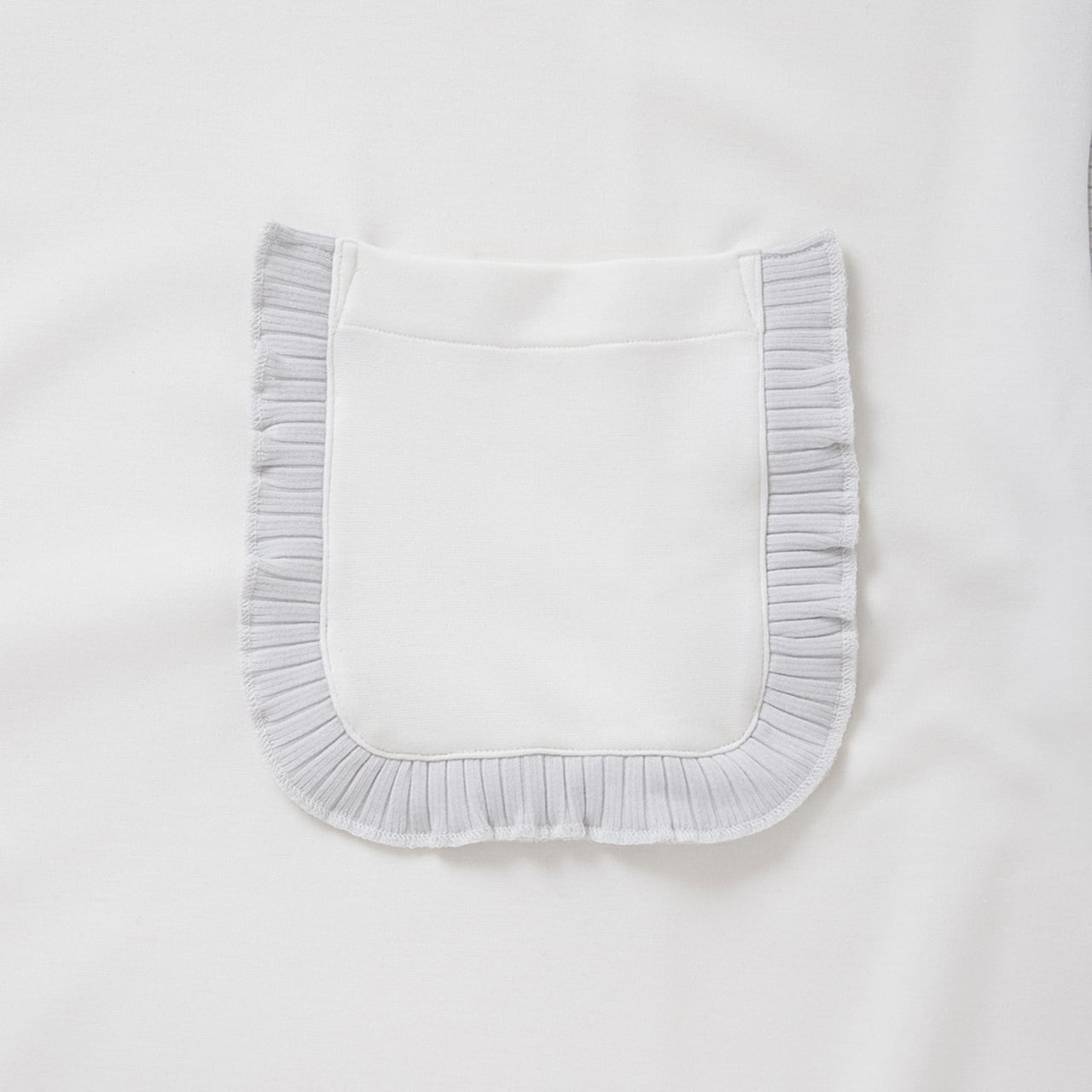 “袖のリブ”と”ポケットのリブ”が特徴的なTシャツ。ボディはスポーティさに加え上品さも兼ね揃えたポンチ素材を採用。ポケットにはブランドの特徴であるフリルをリブで表現。ギミック感のある袖のリブとボディが、一見フリルと交わらないようで上手く調和する。