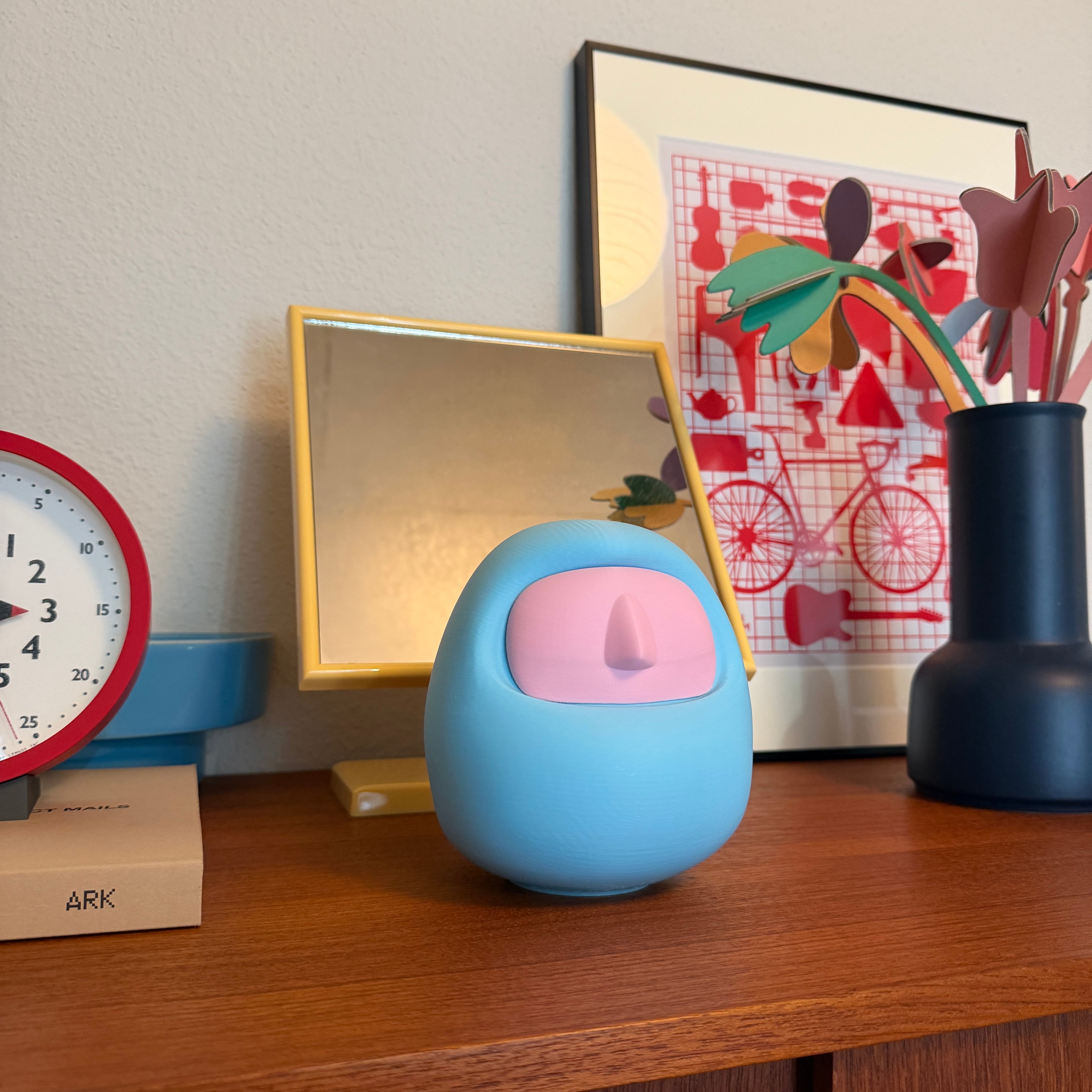 本作では、その象徴性をそのままに、ポップな色彩と現代的なフォルムで再解釈し、現代の生活空間に溶け込むアートオブジェとして表現しています。
