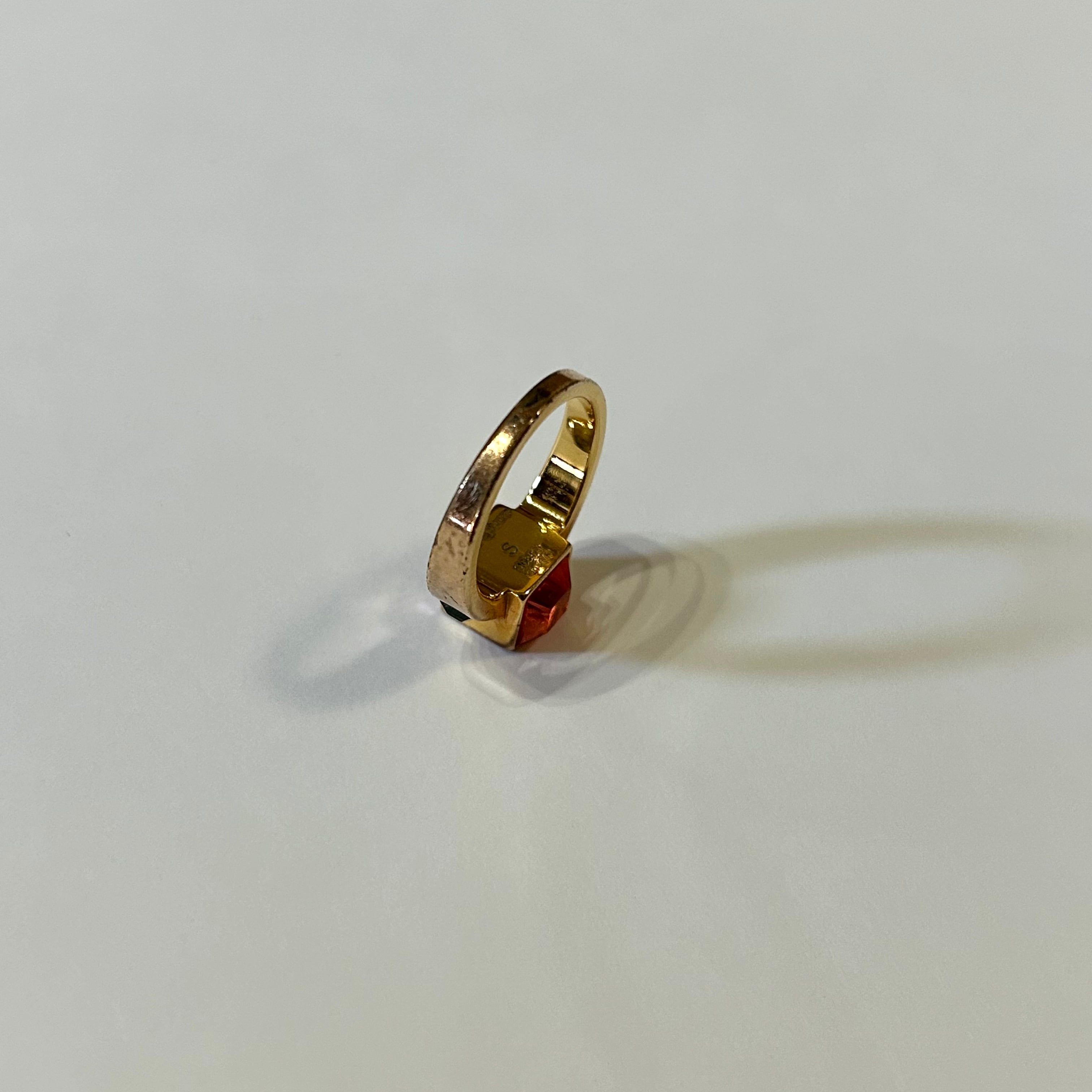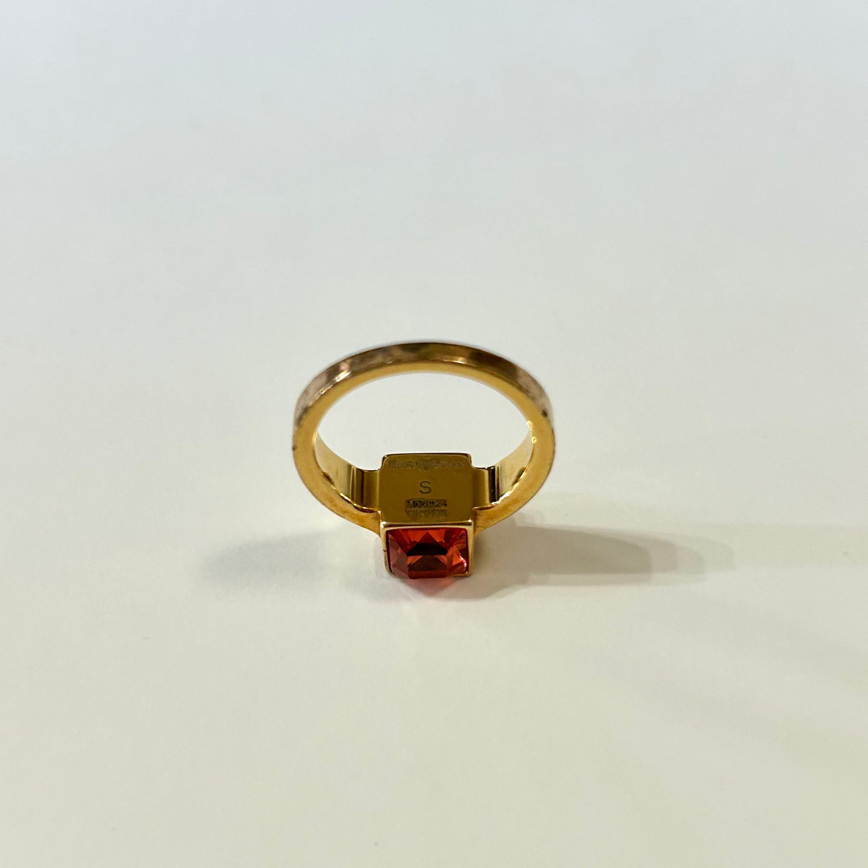 ルイ・ヴィトンのバーグ・ギャンブルリング。ブランドロゴとゴールドカラーで上品な印象。4箇所に配置されたカラーストーンがさらに存在感を際立ててくれます。子供が付けるオモチャののような感覚で付けたいです。リング下目にやや剥がれがございますが、全体的には状態良い方です。保存袋有り。